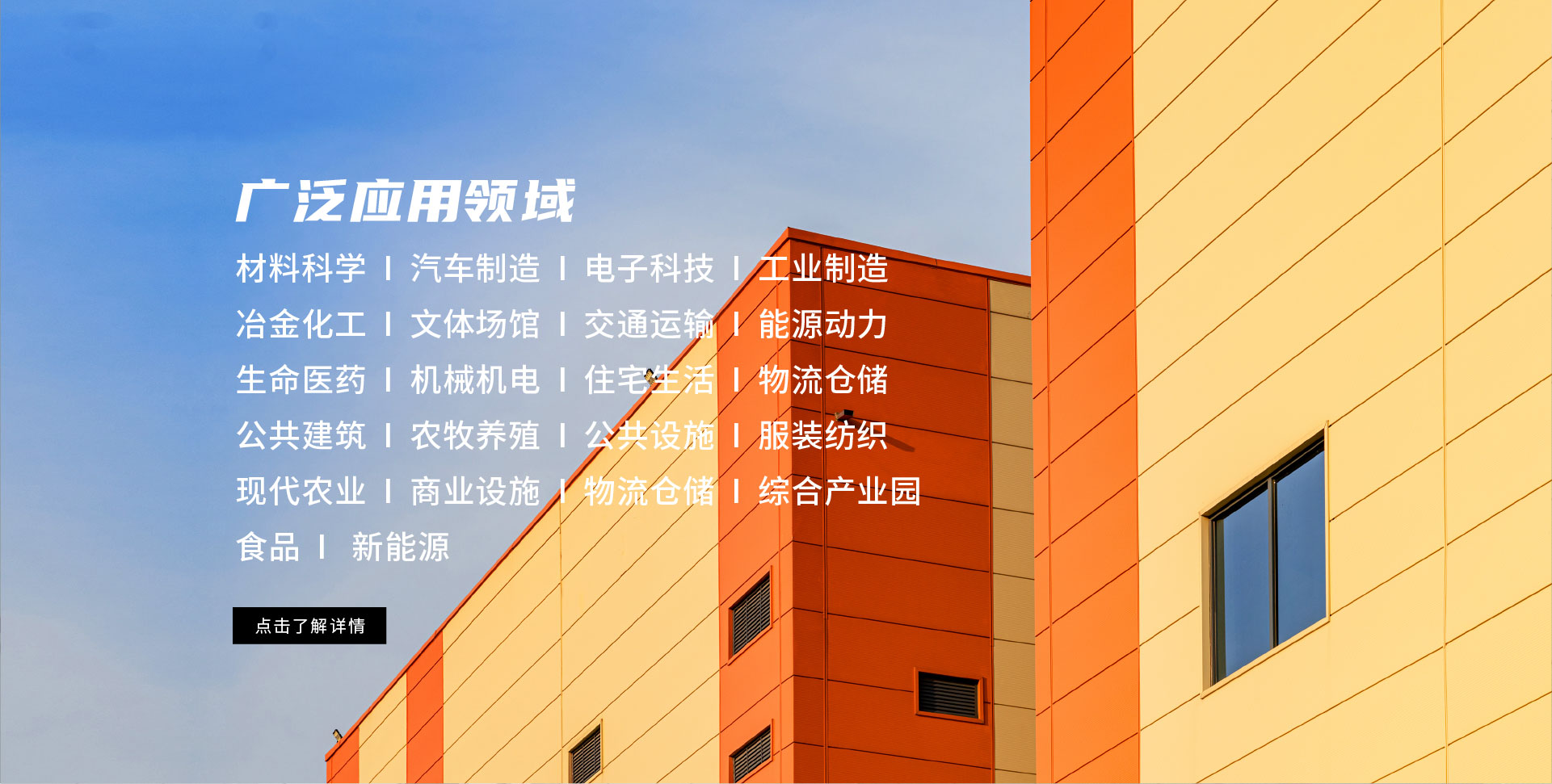 汽車制造 電子科技 綜合產業園 冶金化工 文體場館 交通運輸 能源動力 生命醫藥 機械機電